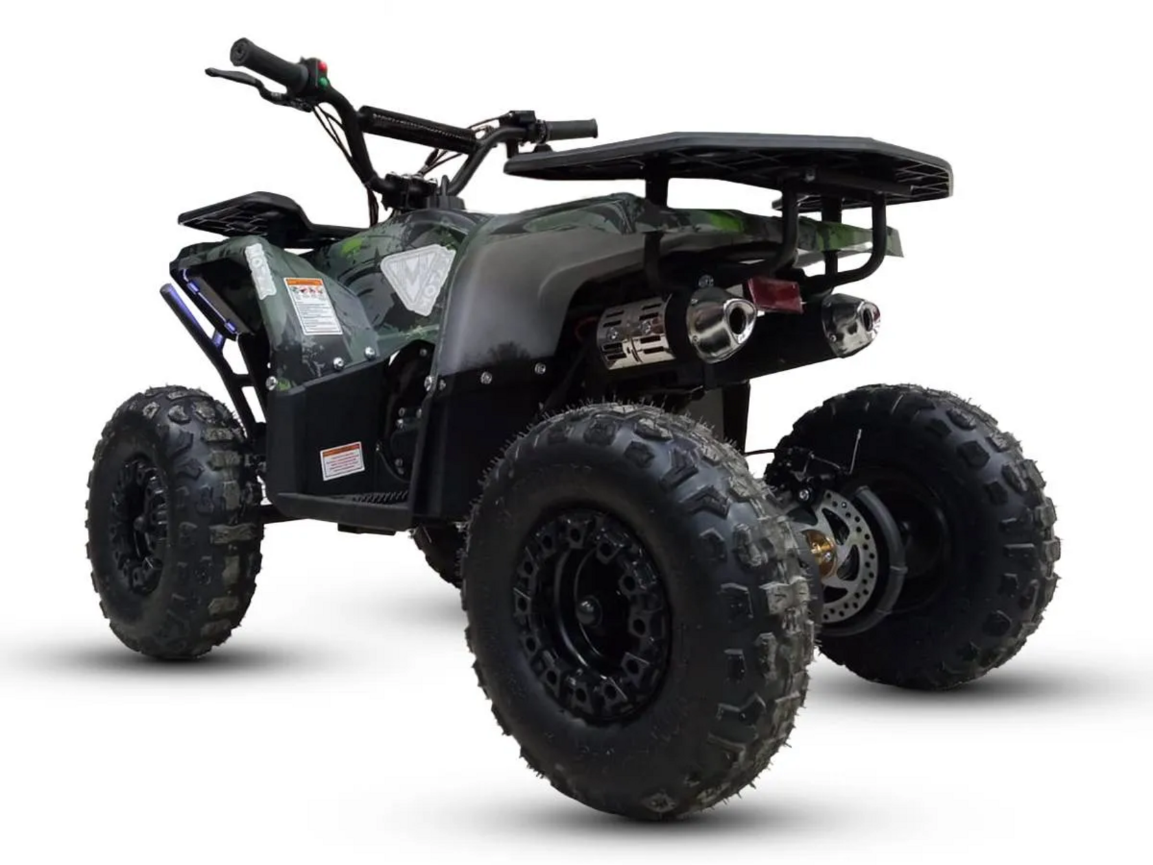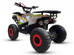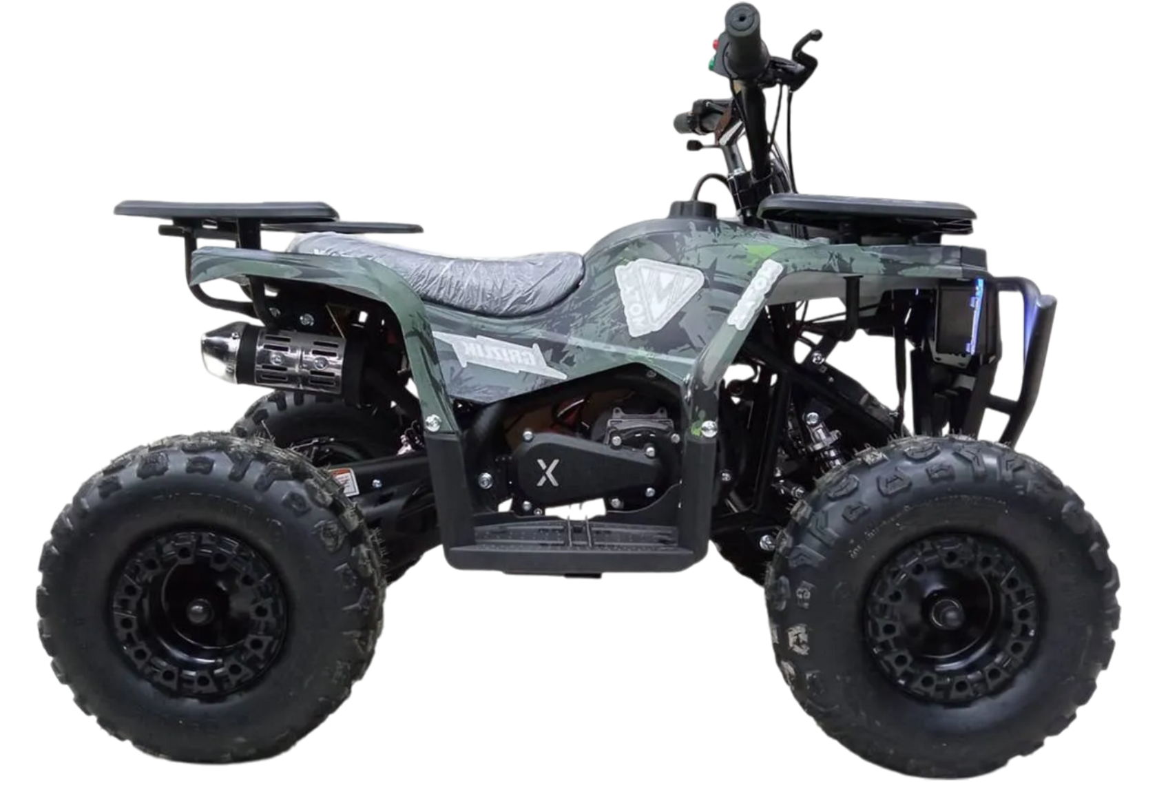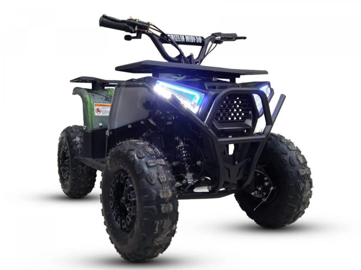 Квадроцикл оснащен надежным двухтактным двигателем объемом 50 см³, что обеспечивает необходимую мощность для уверенного катания. Простое управление, автоматическая трансмиссия и мягкая подвеска делают обучение комфортным и безопасным. Прочная стальная рама и дисковые тормоза повышают уровень защиты юного водителя.
