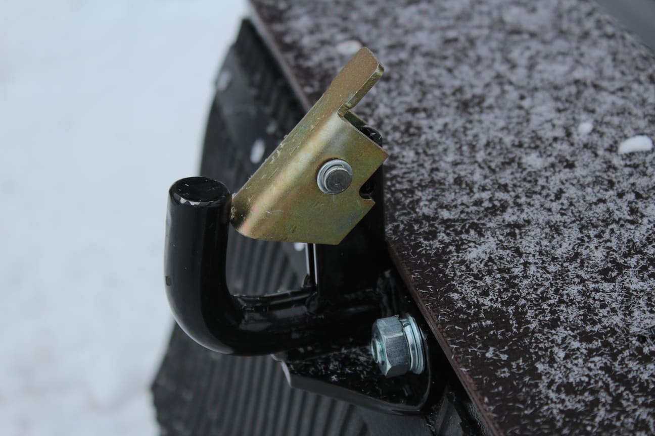 Модель оснащена прочной рамой, рулевым управлением, ручным стартером и световым оборудованием. Катковая подвеска обеспечивает плавность хода, а гусеница шириной 500 мм с металлическими вставками повышает сцепление на рыхлых поверхностях. Дополнительный комфорт обеспечивает подогрев ручек и регулируемый угол атаки (от 11° до 55°).
