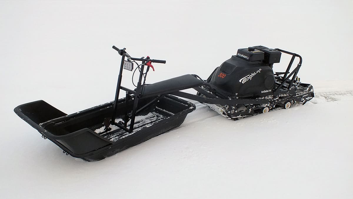 Мотобуксировщик ТОФАЛАР 500 с модулем Толкач — это всесезонное средство передвижения по самым труднопроходимым участкам: снегу, льду, болотистой и мягкой местности. Он идеально подойдёт для охоты, рыбалки, активного отдыха и выездов в тайгу или лес. Благодаря надёжной конструкции и мощному двигателю, этот мотобуксировщик обеспечивает комфортную и безопасную эксплуатацию в любое время года. Оснащённый прочным каркасом и широкой резиновой гусеницей, ТОФАЛАР 500 способен перевозить грузы весом до 500 кг при подключении саней. При этом его собственная масса составляет всего 120 кг, что делает его мобильным и манёвренным. Благодаря катковой подвеске, техника мягко проходит по неровностям и обеспечивает устойчивое движение даже без снежного покрова. Двигатель мощностью 15 л.с. объёмом 420 см³, вариаторная трансмиссия и ручной стартер делают управление простым и надёжным. Подогрев ручек и фара позволяют с комфортом использовать технику в зимних условиях. ТОФАЛАР 500 — это надёжный помощник, способный справиться с самыми сложными маршрутами и нагрузками. Подходит для эксплуатации круглый год — по снегу, льду, грязи и бездорожью. 15 л.с., объём 420 см³, позволяет развивать скорость до 40 км/ч. Цельная резиновая гусеница 500 мм обеспечивает отличную проходимость. Вариаторная коробка передаёт мощность плавно и эффективно. Информация о характеристиках представлена для ознакомления. Производитель может вносить изменения без предварительного уведомления.ТОФАЛАР 500 с модулем Толкач