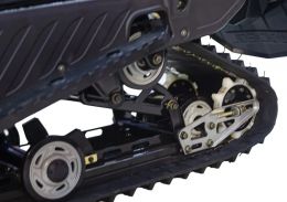 Ходовая часть включает переднюю A-образную двухрычажную подвеску и заднюю рычажную с амортизатором. Это обеспечивает стабильную и мягкую езду по неровной поверхности. Широкая гусеница с грунтозацепом 33 мм и шириной 380 мм повышает проходимость. Грузоподъёмность — 150 кг, тяга — до 210 кг.