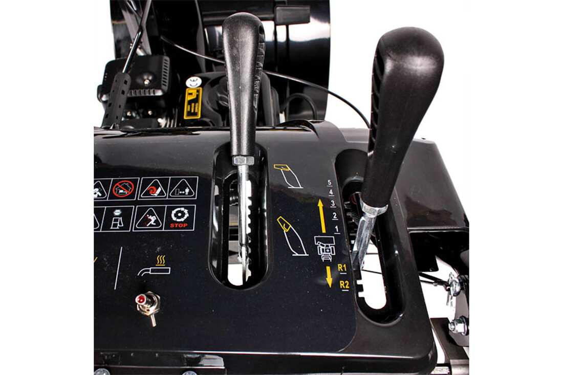 Скорость. Снегоочиститель обладает 5-ю передачами вперед и 2-мя назад таким образом, что вы сможете выбрать оптимальную скорость, от которой будет зависеть также и сила уборки (в зависимости от сложности задач).