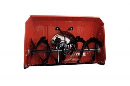 - Металлический желоб для выброса снега. Находится в удобном месте, позволяет перенаправлять выброс снега до 200 градусов с помощью рычага.