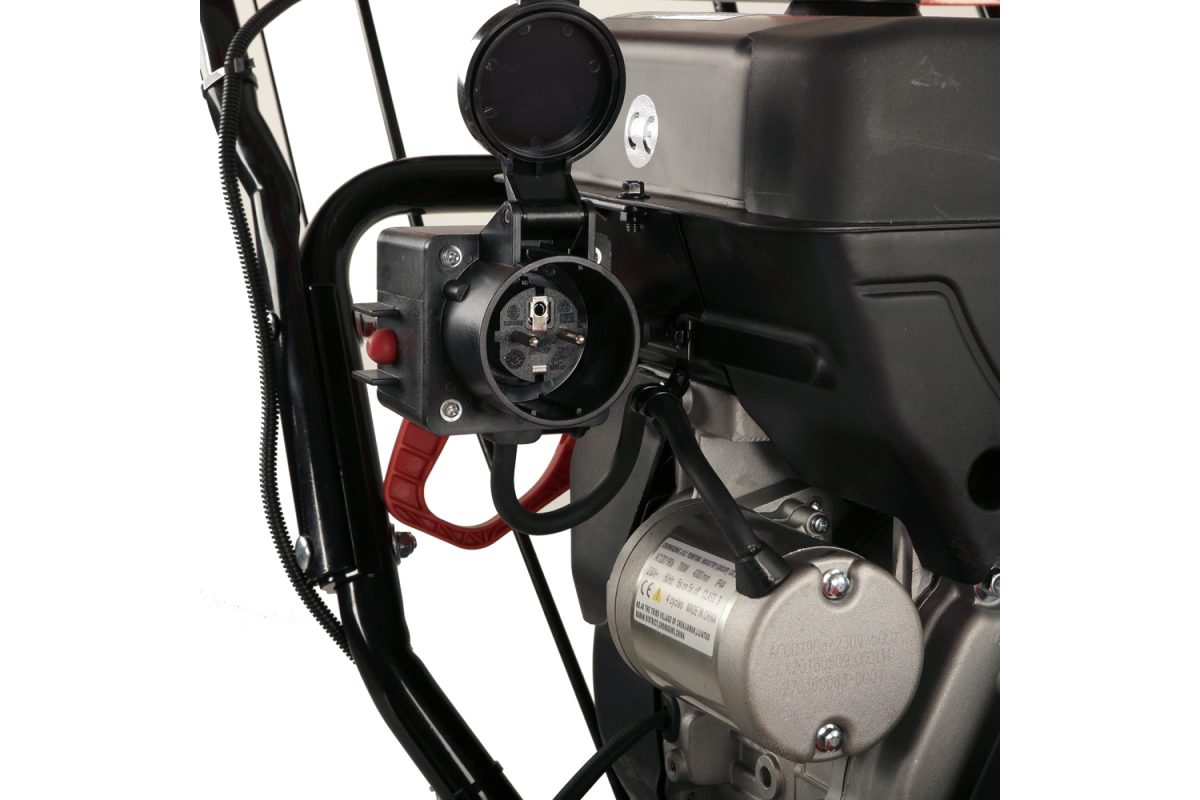 - Электростартер. Напряжение 220В оснащает снегоуборщик быстрым запуском в любую погоду.